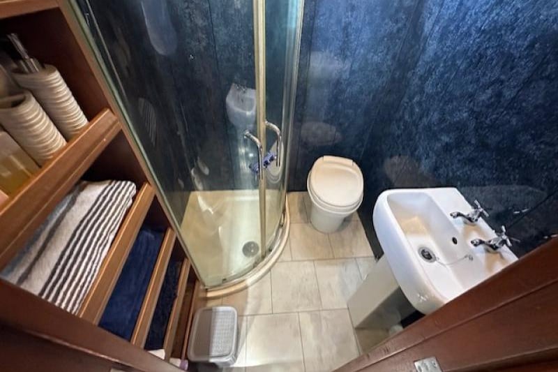 - Sleeping for two above Toilet/Shower with fitted mattress and TV