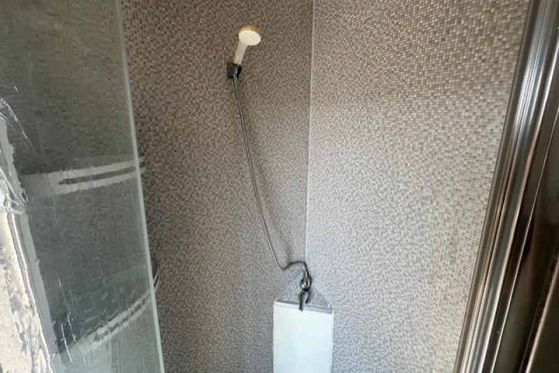 - Fitted corner shower with glass door