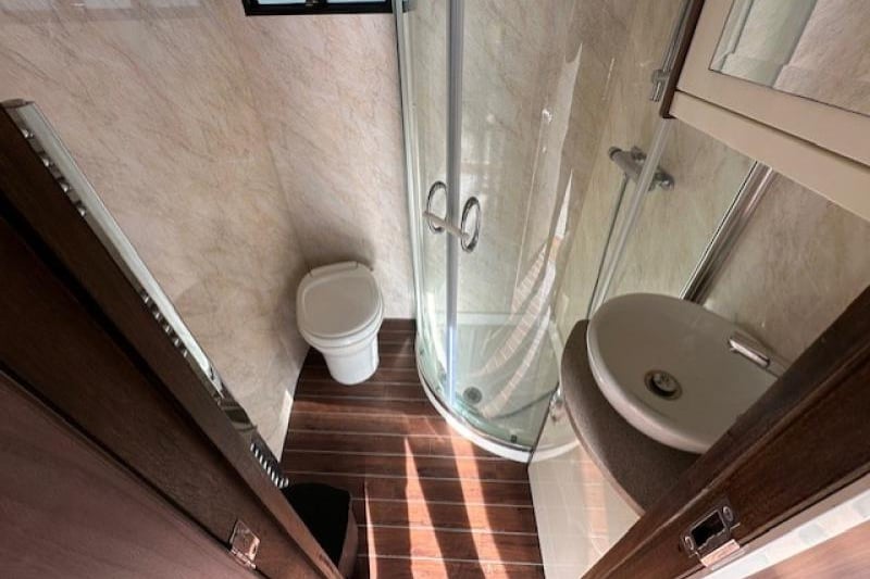 - Bed above toilet and shower with skylight and luxury foam mattress fitted