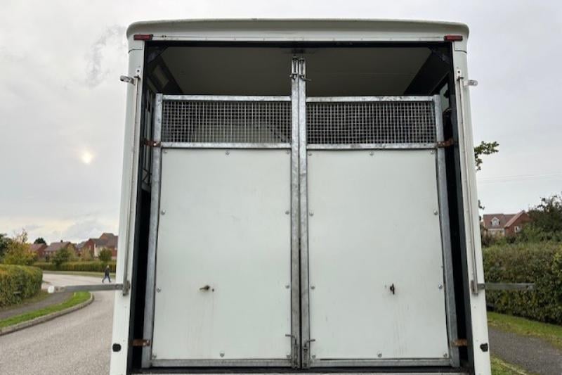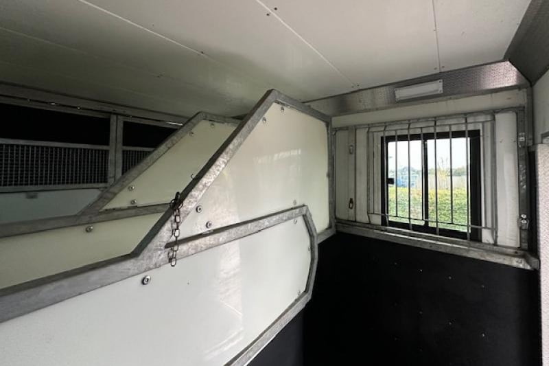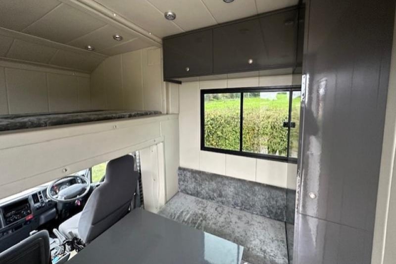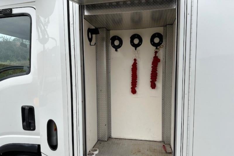 This 2010 Isuzu N75 190 7.5 ton automatic horsebox, with just 41,748 miles and MOT until May 2026, is stalled for three in a spacious, well-ventilated herringbone layout with aluminium flooring and EVA kick boarding. It offers compact yet smart living with sleeping for two, kitchen facilities, and storage, alongside a clean cab and exterior finished in Mercedes Brilliant White with external lockers and tie rings.