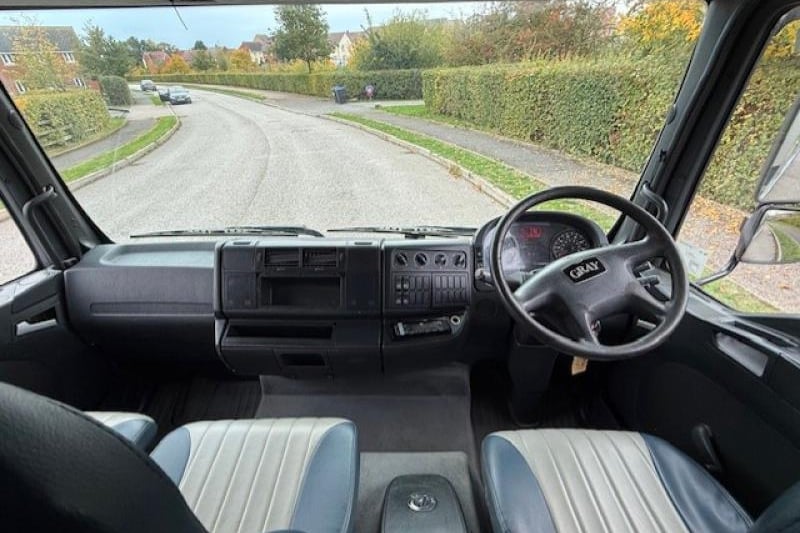 - Grey and blue leather seating with grays horsebox logo