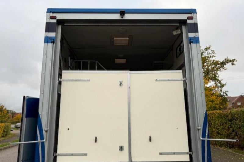 Finished in metallic paintwork with external tack lockers, skirt lockers, and chrome trims, this Solitaire Sapphire 3 is an ideal luxury 7.5 T horsebox - ready to drive away.