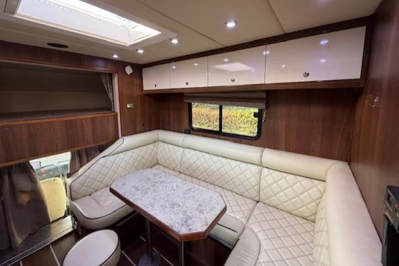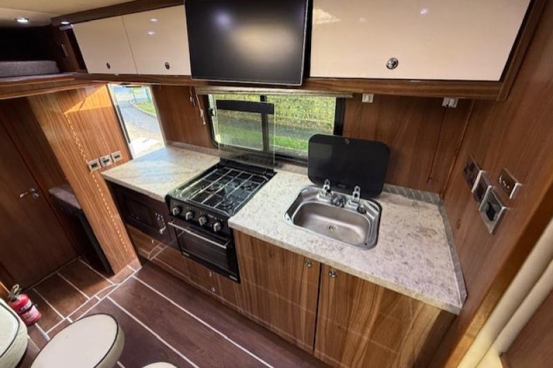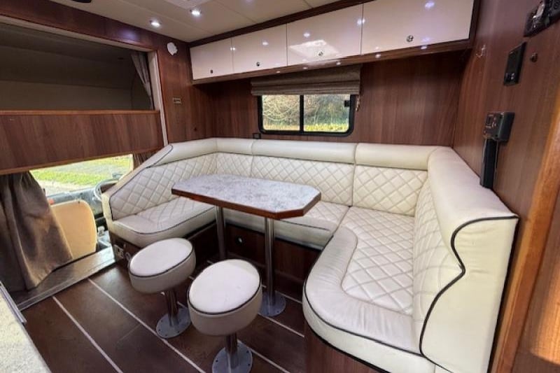 This 7.5-ton Iveco Eurocargo by Maudsley Horseboxes offers luxurious family-friendly living for up to five, with high-quality leather seating, a full kitchen, bathroom, and generous storage throughout. Stalled for three and featuring a well-ventilated, inviting horse area plus extensive underfloor and exterior storage, it’s a fully equipped, comfortable long-distance horsebox.