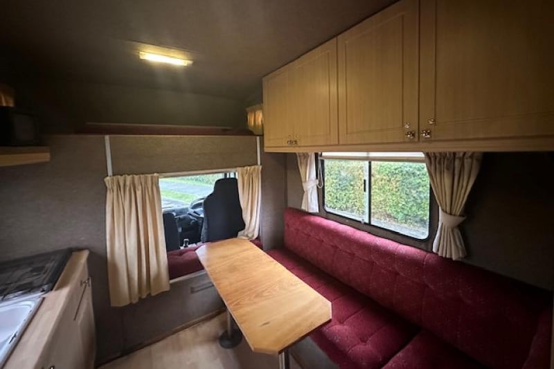 - Sleeping for two above the cab in the luton with fitted mattress