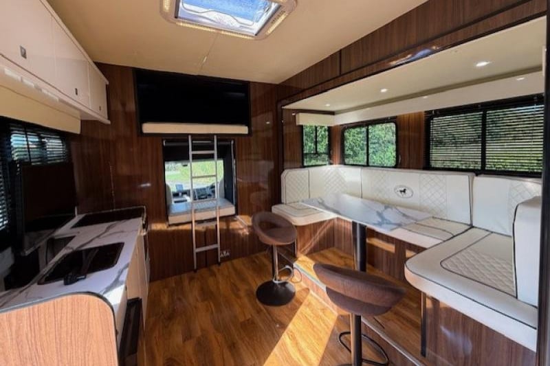 - Aluminum flooring throughout the horse area with thickanti-slip rubber matting